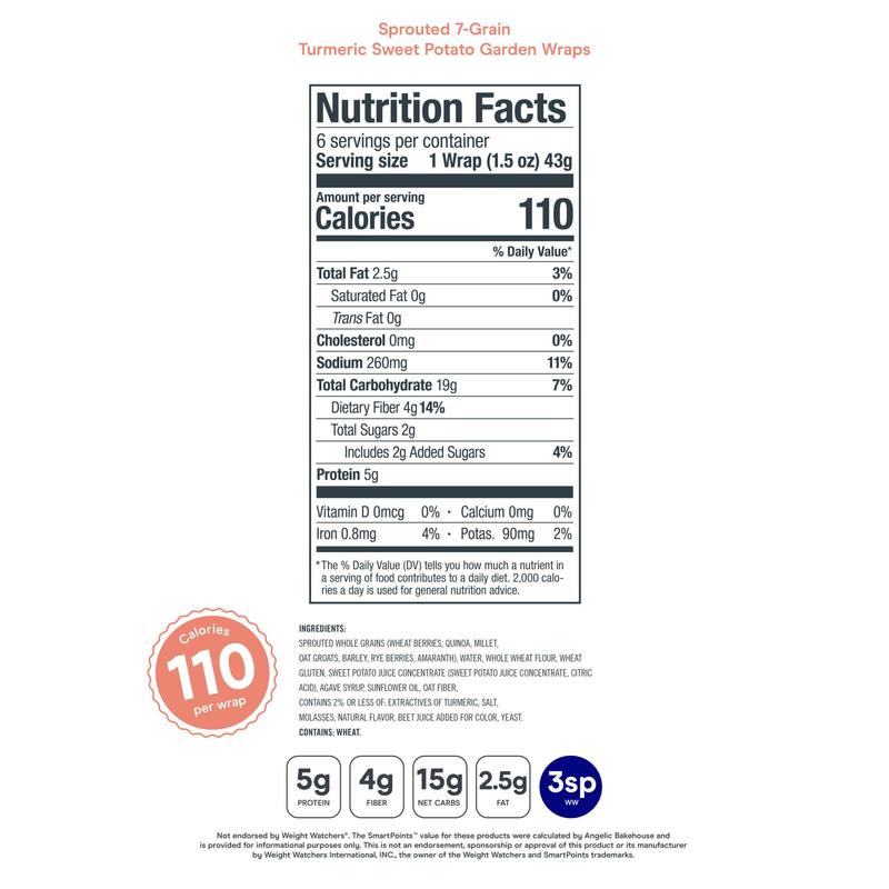 Sprouted Whole Grain Sweet Potato Wraps Tortillas