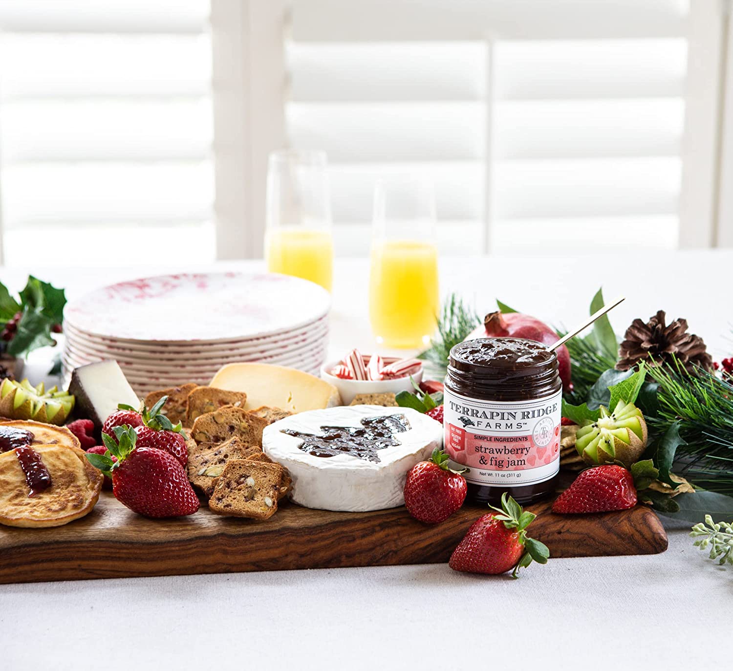 Figs and strawberries complement each other in this delicious gourmet jam, while a touch of orange zest gives this all natural jam complex flavor. Marvelous spread on brie or goat cheese. Scrumptious spooned on pork tenderloin as a finishing sauce.
