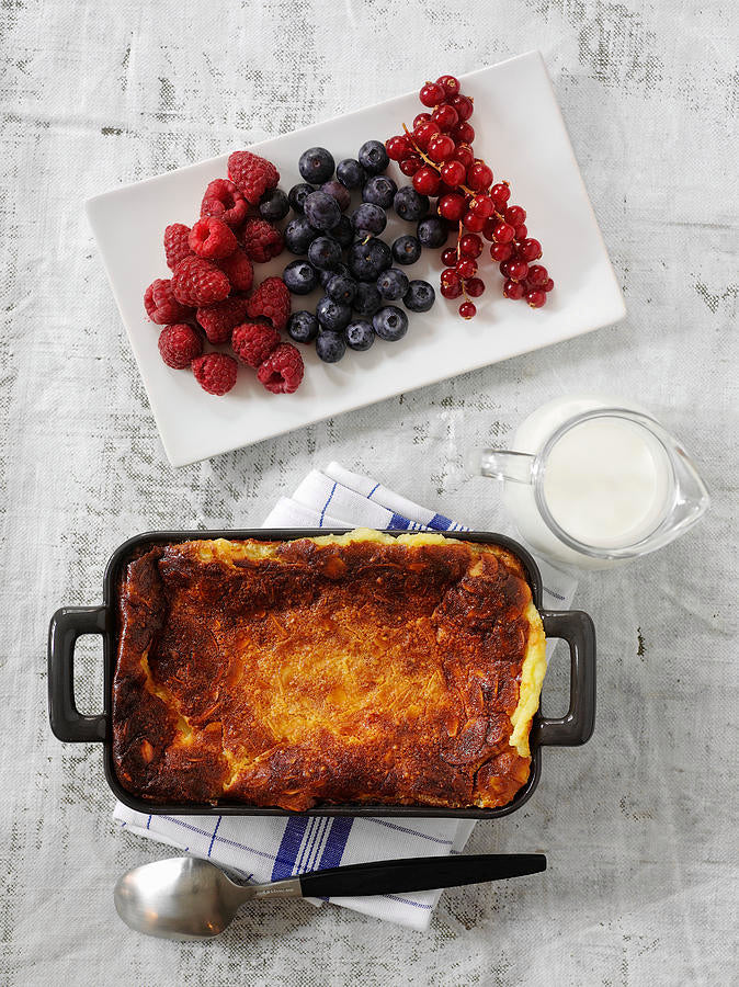 If you’re looking for one of those sweet Americans style cheesecakes, forget it. This is the much less sweet Swedish version – ‘Ostkaka’ – which simply means cheesecake. It is a really old Swedish traditional favourite, first mentioned in the 16th century – it’s that old.