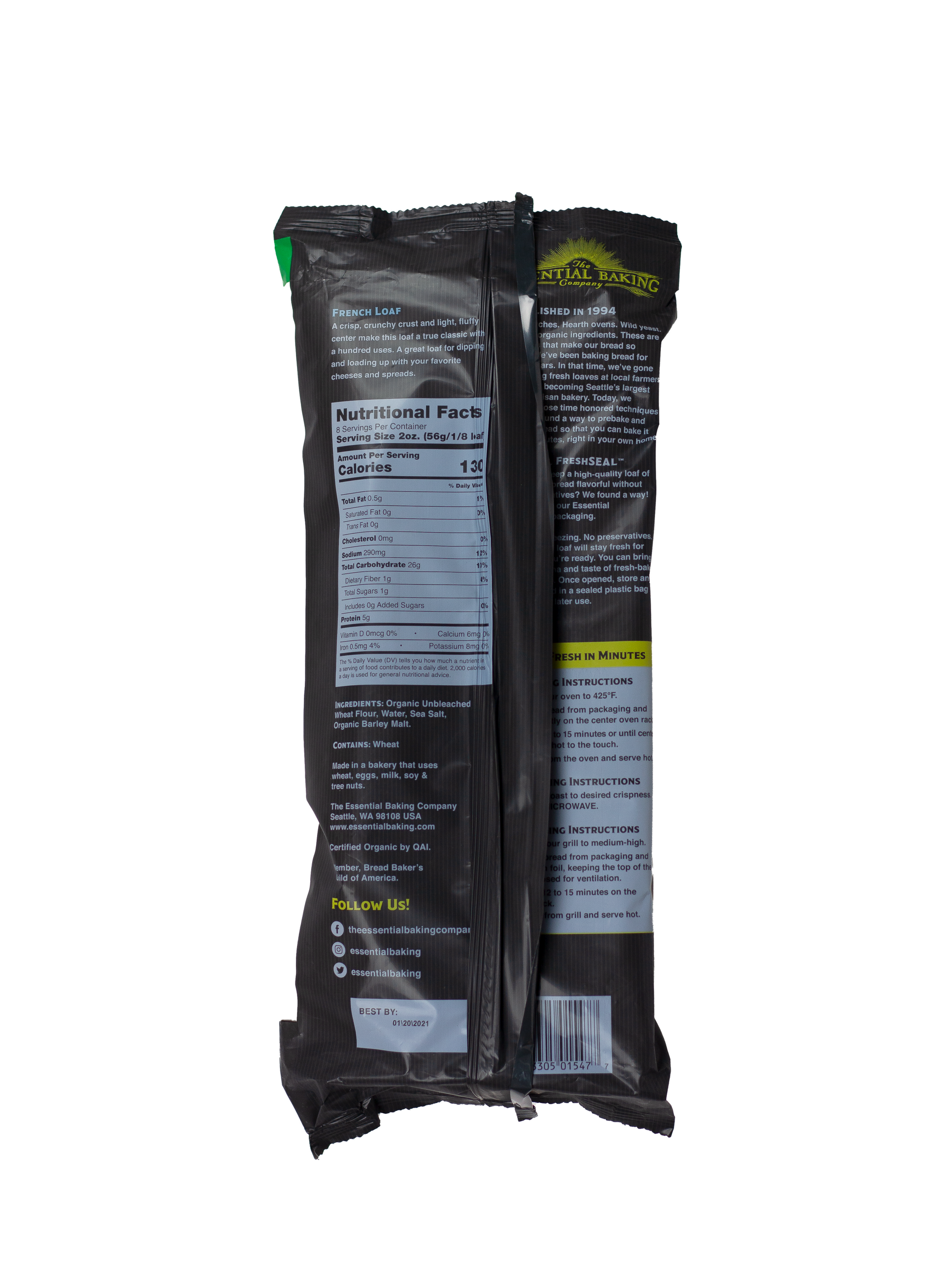 French: Organic Unbleached Wheat Flour, Water, Sea Salt, Organic Barley Malt.