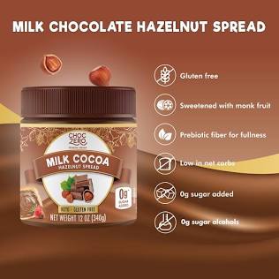 Vegan Milk Chocolate Cocoa Hazelnut Spread by ChocZero - Keto Friendly, Sugar Free Dessert and Keto Bread Topping - Low Carb Chocolate