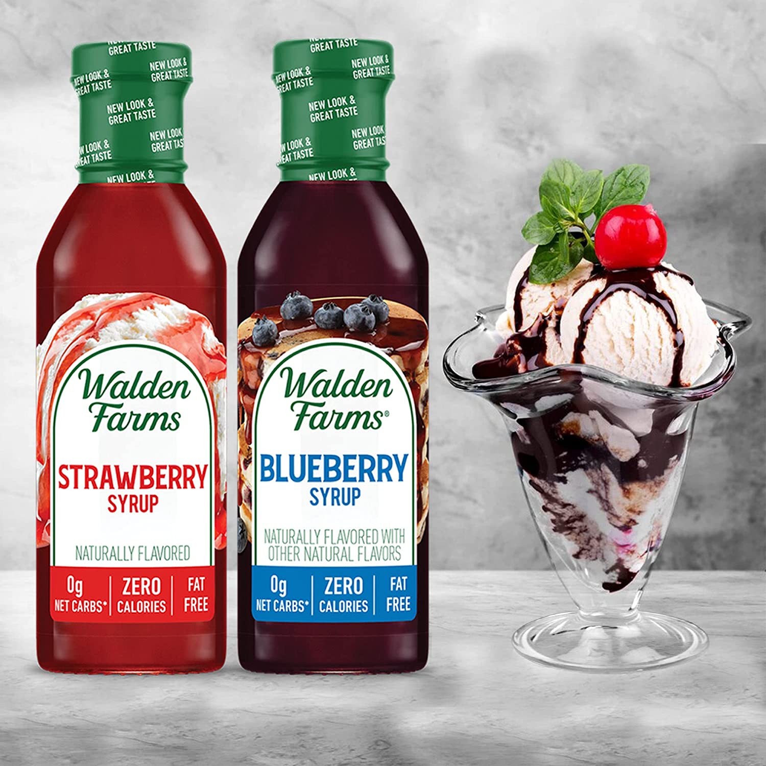 Walden Farms Variety Pack Syrups - Blueberry & Strawberry - 12 oz, 0g Net Carbs Keto Friendly, Non-Dairy, No Gluten, Sugar Free