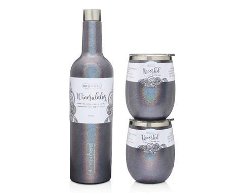 Winesulator + 2 Uncork'd XL Wine Glasses/Lid | GLITTER CHARCOAL | BrüMate