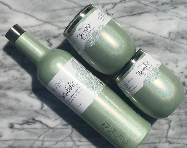 Winesulator + 2 Uncork'd XL Wine Glasses/Lid | GLITTER MINT | BrüMate