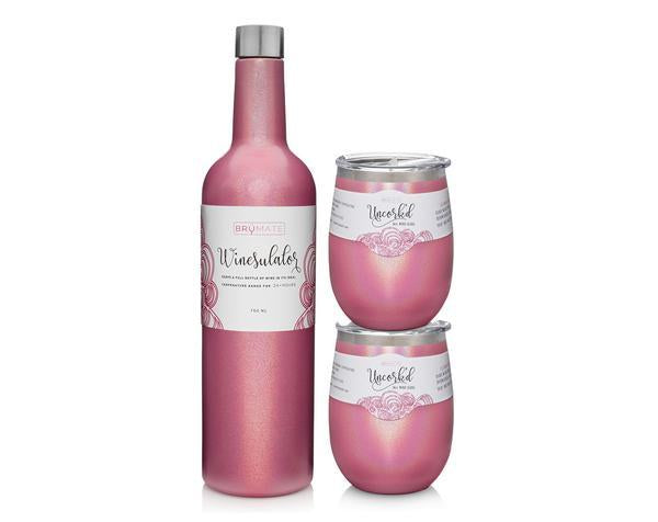 Winesulator + 2 Uncork'd XL Wine Glasses/Lid | GLITTER PINK | BrüMate