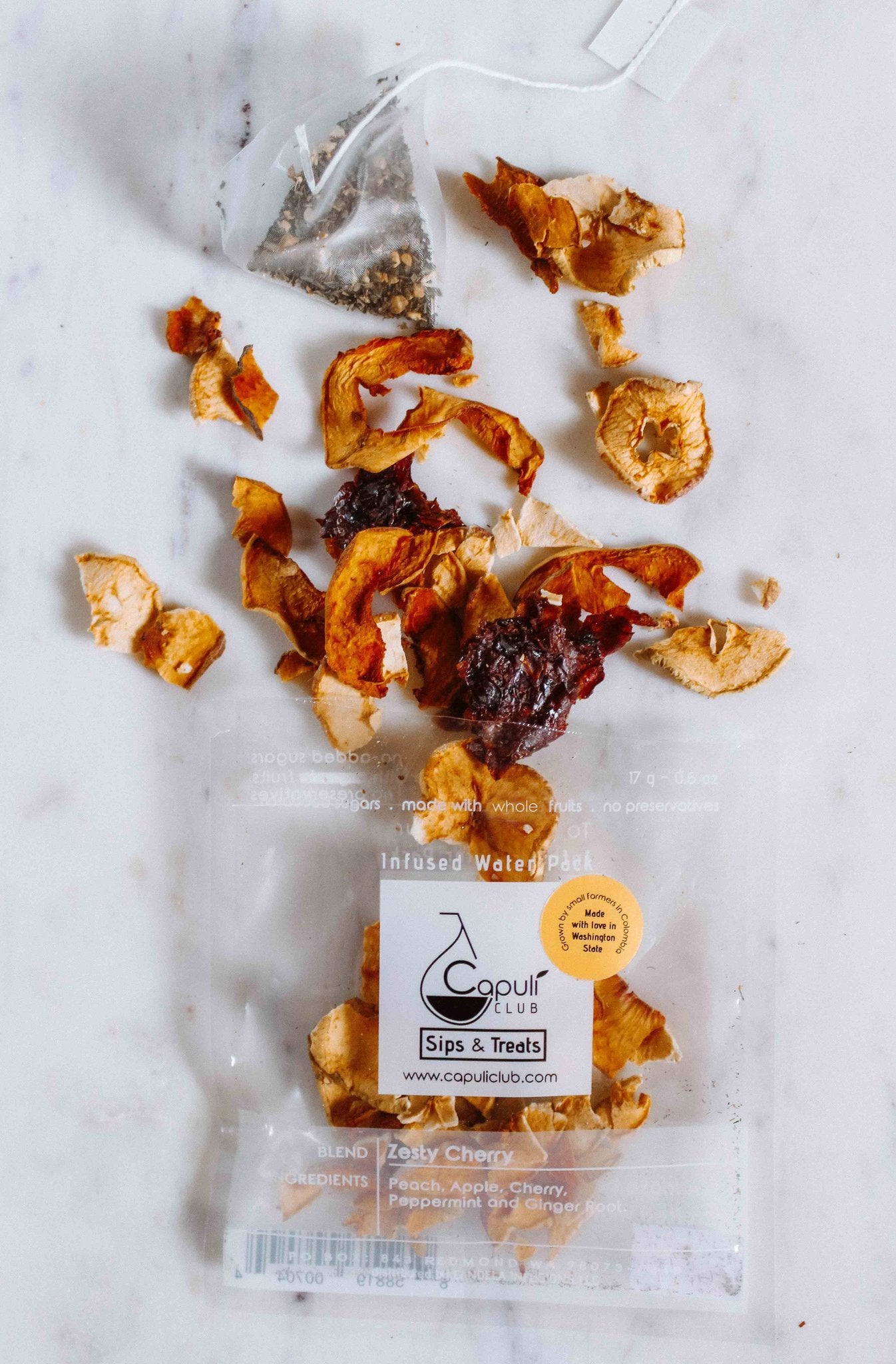 Capuli is our name, and our Sips & Treats are a new type of dessert drink inspired by detox waters and traditional herbal infusions. Our Sips & Treats are our healthy, naturally sweet drink and snack; you can drink the infusion and nibble on the delicious, natural pieces of whole fruits.